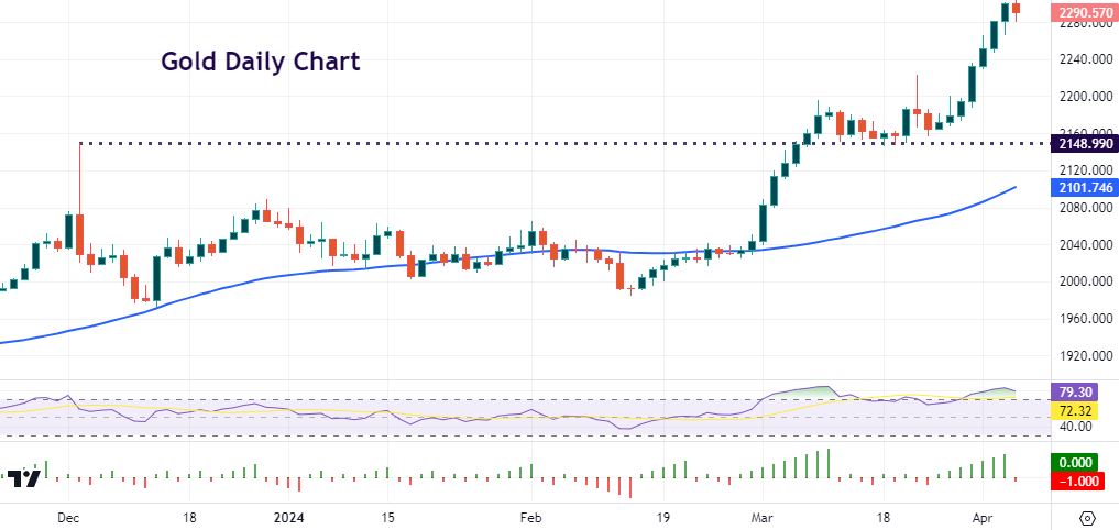 Markets are still expecting the Fed will start cutting interest rates in June. However, these expectations could change after today’s US jobs report. A strong set of data will potentially push yields and the dollar higher, impacting gold. A softer headline and details could further boost the precious metal’s rally beyond $2300. Focus will then turn to next Wednesday’s CPI release. The monthly reading expected of 0.3% is still too high for the majority of policymakers.