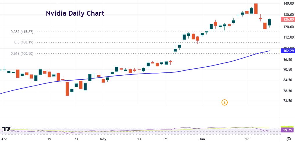 The 15% correction eased yesterday with a jump of nearly 7%, as the stock steadied just above the 38.2% Fib level of the April to June high move at $115.87. The all-time high sits at $140.76. The stock was trading some 20% above its 50-day SMA. That comes in at $102.29.