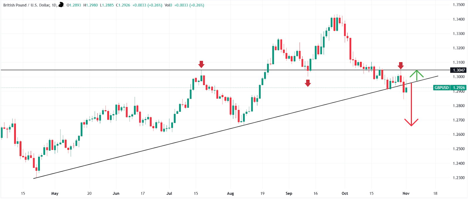 Last week, USDJPY continued its bullish trend, breaking resistance at 152.00 and currently trading around 153.00. Technical analysis suggests that if the breakout holds, USDJPY could target 162.00; conversely, a failure may lead to a drop to 149.10. Upcoming volatility will likely stem from the US election and the Fed’s rate decision.