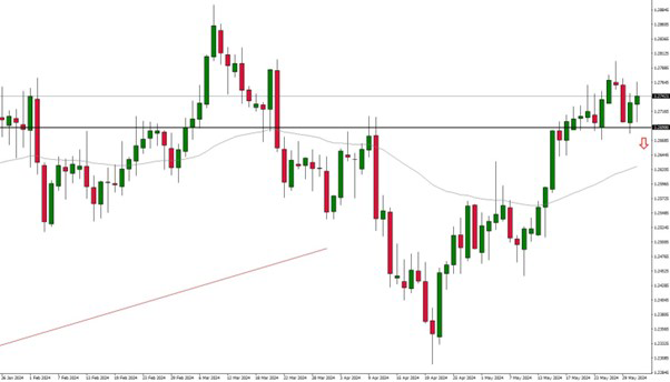 According to the daily chart, a break of the support at 1.2690 might ignite further downside potential based on the long-term trend. The figure will be released on June 5 at 14:15CET.