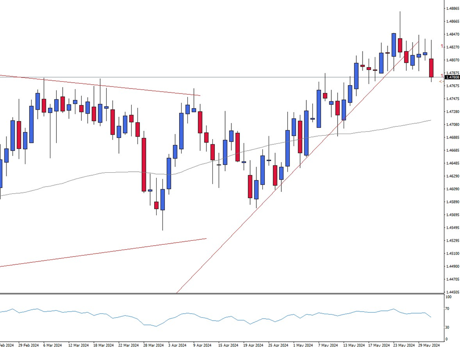 The EURCAD pair might offer exciting opportunities. The market currently trades at a resistance area and could now show new downside potential unless the 1.4800 zone is broken to the upside. Important news could follow during the press conference thereafter. A hint of possible further interest rate moves could then move the CAD. The interest rate decision will take place on June 5 at 15:45CET.